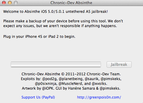 - Download Greenpois0n Absinthe 0.2 (Mac)